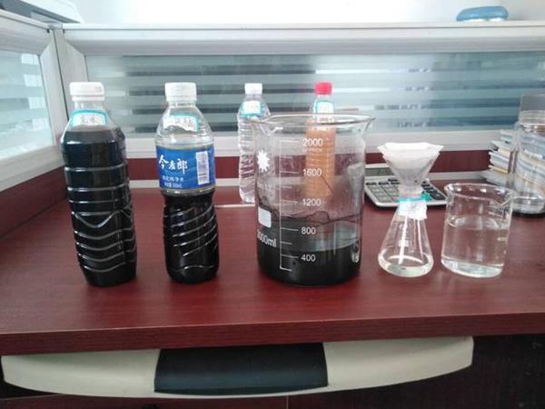 下圖便是農(nóng)藥污水處理前后對(duì)比圖,依次從左到右,是從污水到凈水的過(guò)程。