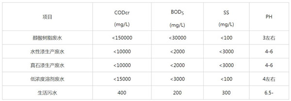 1、醇酸樹脂廢水:廢水中主要含有三苯、醇類,醚類、脂類,廢水的COD為130000-150000mg/L。